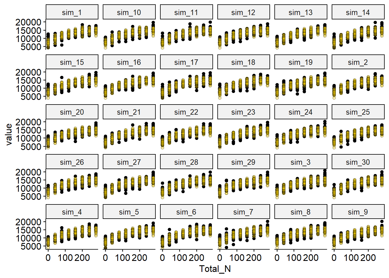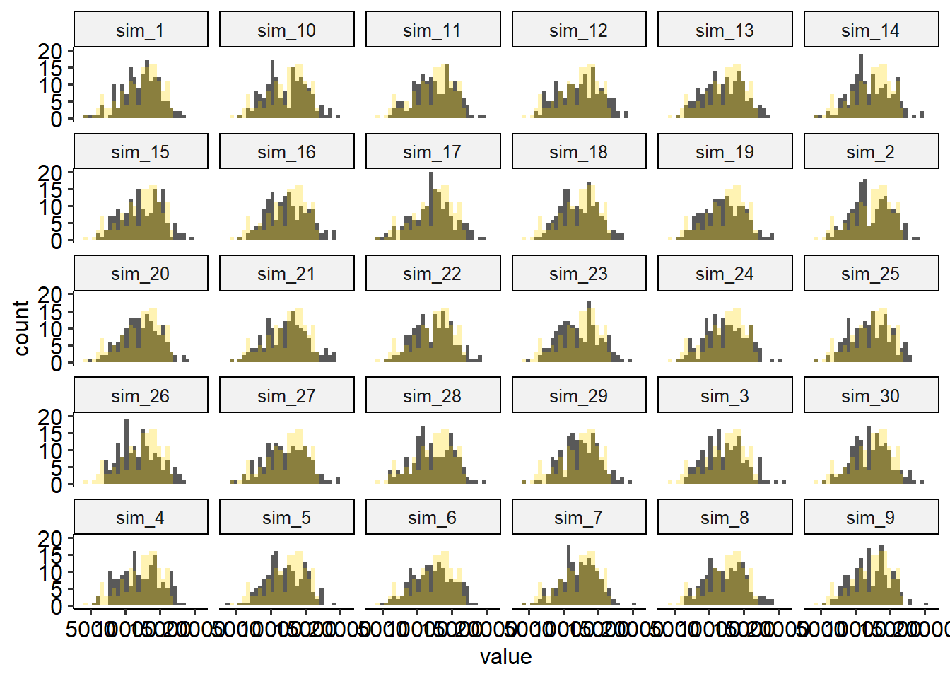 theme_set(theme_pubr())y_sim <- simulate(m1, nsim =30, seed = 42) |>