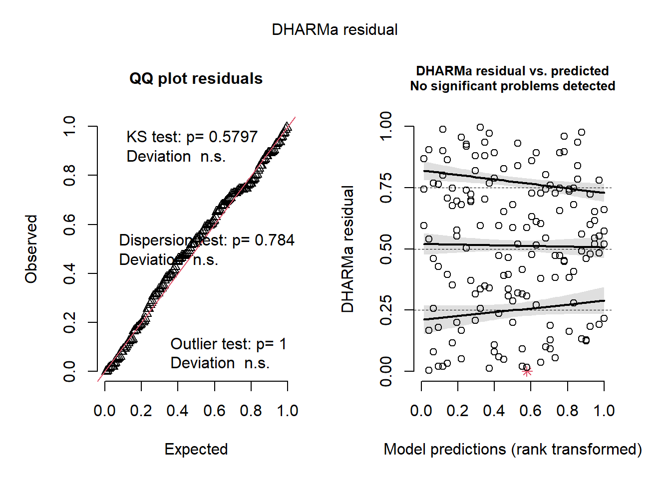 ## Object of Class DHARMa with simulated residuals based on 250 simulations with refit = FALSE . See ?DHARMa::simulateResiduals for help.